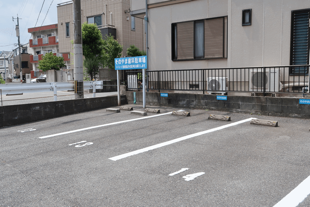 建物裏の駐車場は、青いプレートのある12番~14番をご利用ください。