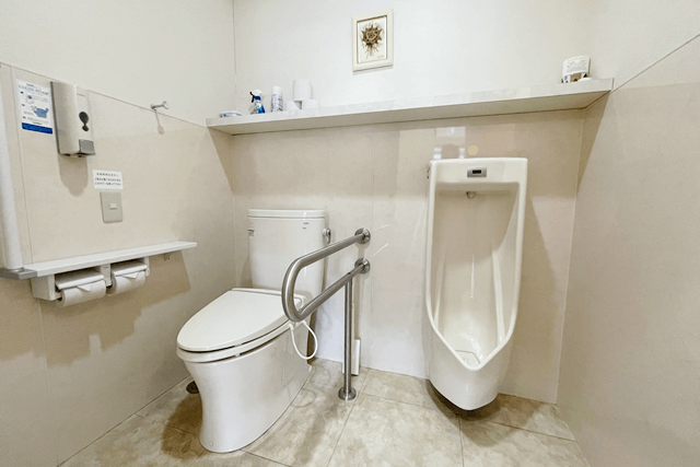 化粧室 (トイレ) もバリアフリー対応です。ゆったりした空間の男女専用様式です。
