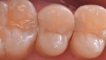 バージンカリエスはどれだけ歯質を残しながら、むし歯菌感染歯質を除去できるかが勝負になります。歯間離開やトンネリングなどの方法を使ってエナメル質の保存を可及的に残します。隣接面は適切な接触点を与えます。