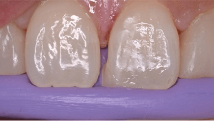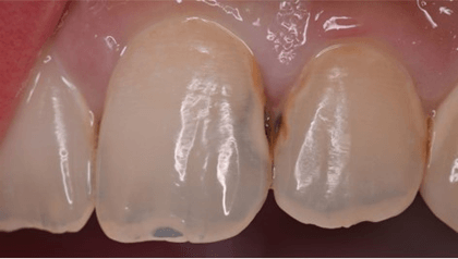 前歯の隣接面はむし歯の好発部位です。特に若年者でむし歯リスクが高いと多発する場合もあります。