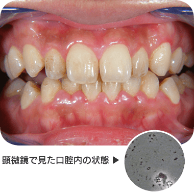 汚れがたまると、汚れをエサにする歯周病菌が繁殖します。