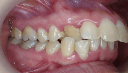 特に前歯が噛んでいない状態と八重歯は奥歯に負担がかかり、むし歯や歯周病が進行しやすい噛み合わせです。