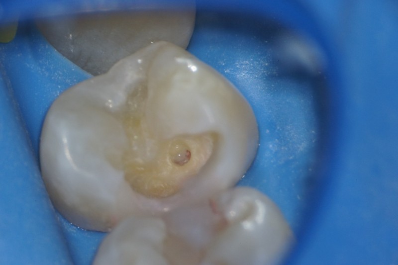 上顎小臼歯の虫歯が深く、神経が露出したが神経を保存したケース