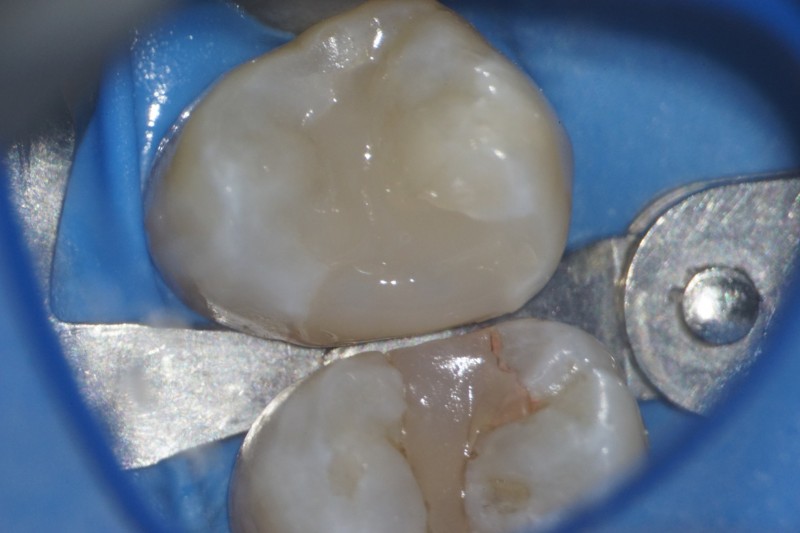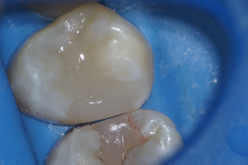 このケースでは、神経を保護してダイレクトボンディングで修復しました。