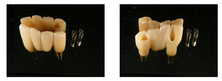 前歯はネジ穴が見えないところになるように埋め込みしています。