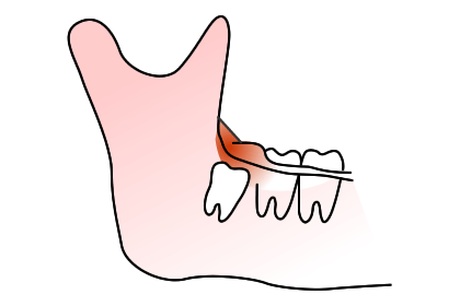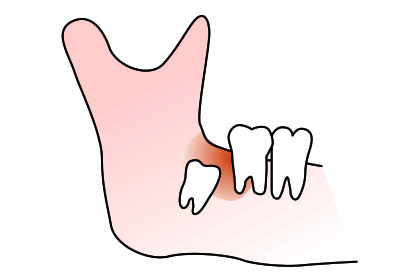 親知らずは歯ブラシが届きにくく虫歯になりやすい歯です。治療も困難で、むし歯になったら抜歯するのが一般的です。(生え方や咬み合わせにより、治療して保存する場合もあります)